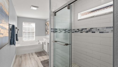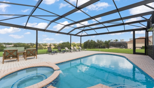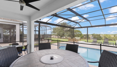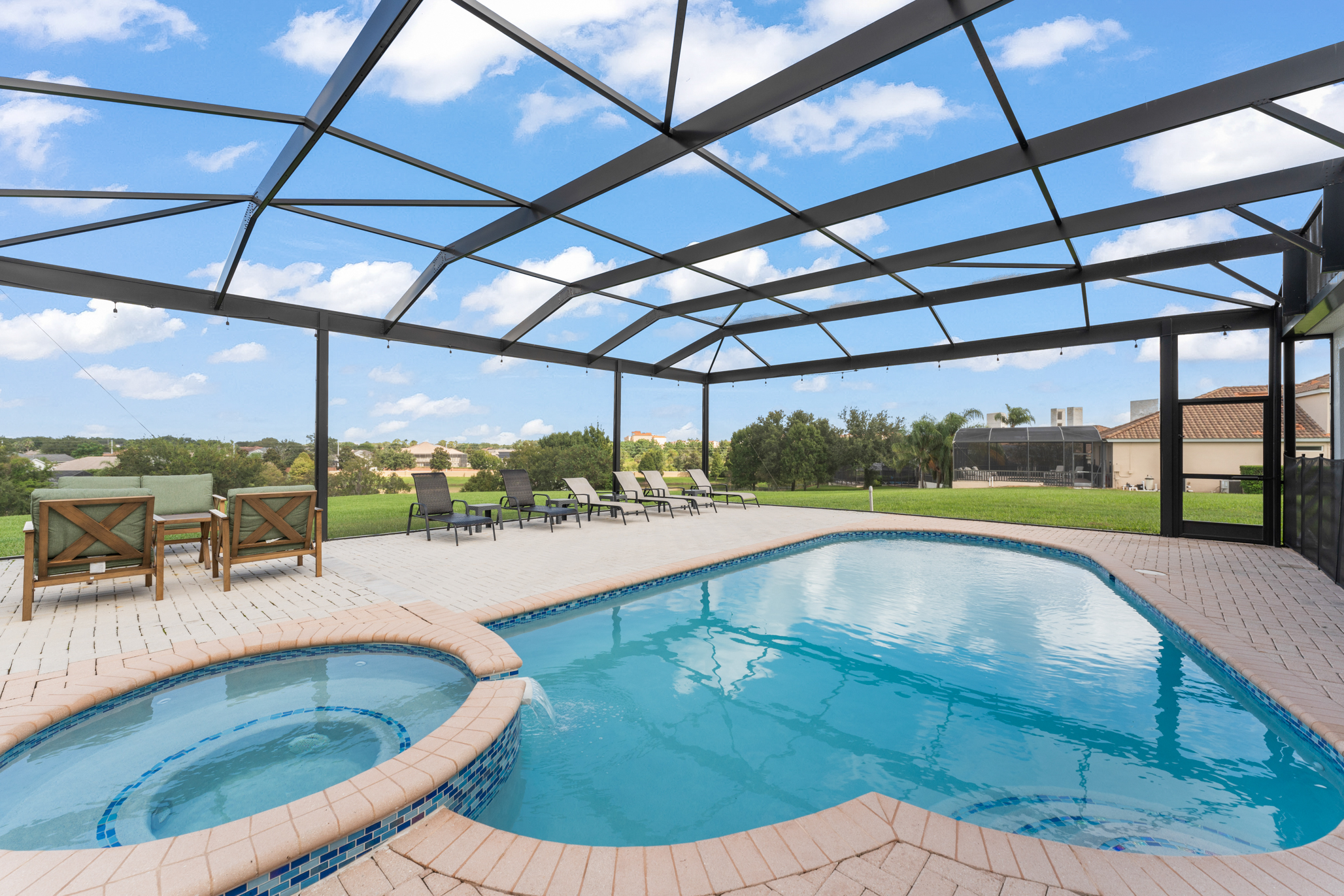 Windsor Hills is recognized as one of the leading Resort communities in Orlando. Our villa is situated in one of the best locations in Windsor Hills, and is one of a small number of villas with a huge extended pool deck (480 sq ft). The vicinity of Disney is generally flat, and our villa is situated in one of the few elevated areas, offering great views. You can even see the Disney fireworks from our pool deck!! There are no neighbors to the rear, and our house overlooks a pond and natural wetlands.