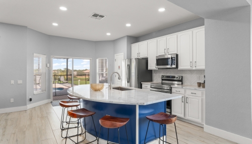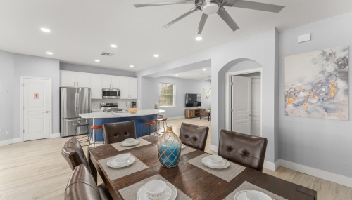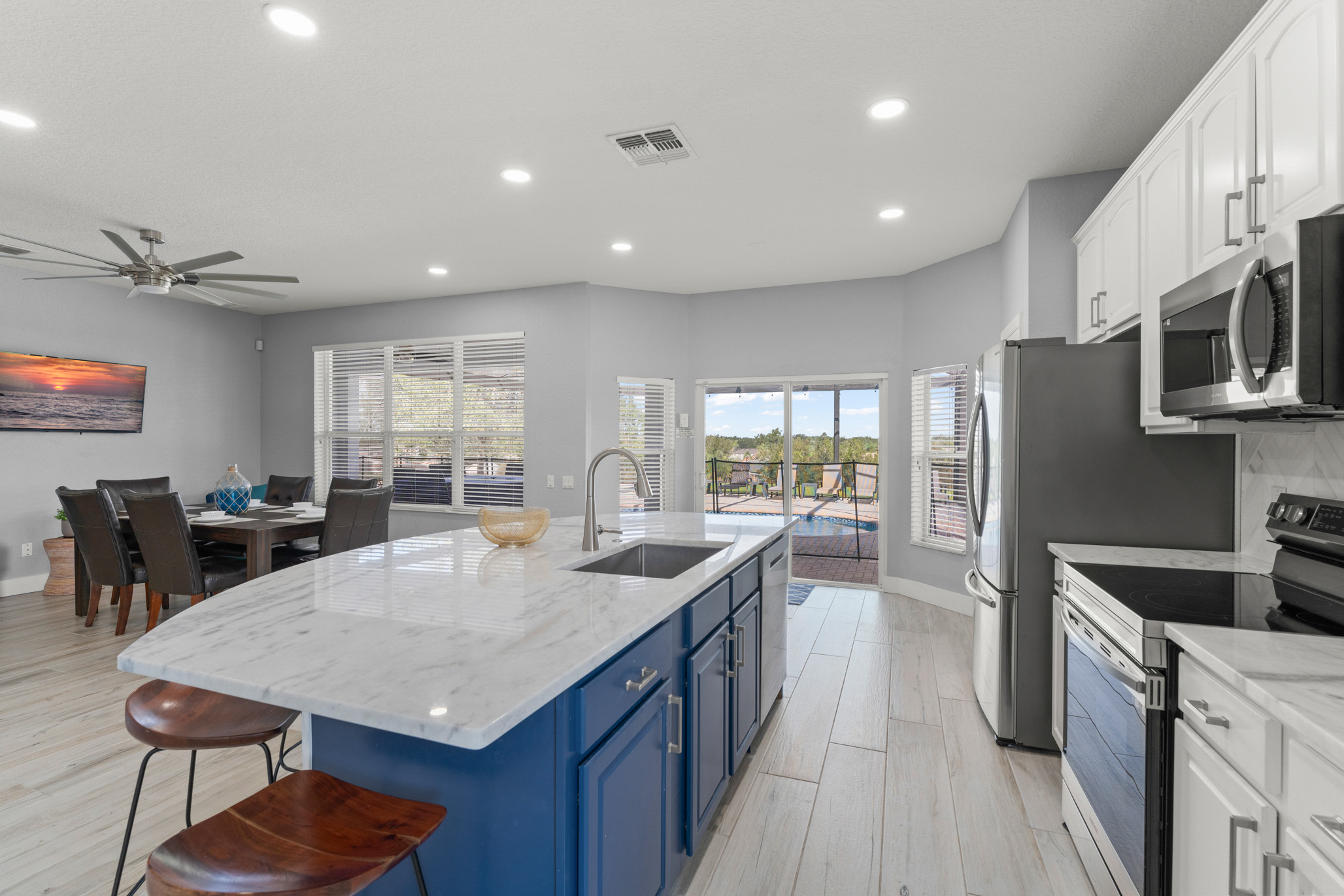 You will see from the photos that the house offers a unique and relaxing open-plan living space, which highlights the best of Florida living. The decor is elegant and contemporary, and the house is finished to the highest standards. The 6 bed/4 bath layout adapts easily for families of all sizes